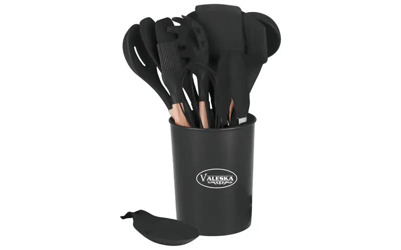 El nuevo juego de utensilios es una joya más de la casa VALESKA y una muestra perfecta que refleja casi dos décadas de experiencia en la fabricación de utensilios de cocina. Estos utensilios de silicona libre de tóxicos ofrece seguridad, durabilidad y un tacto suave en cada preparación. Potencia tu experiencia culinaria con nuestro juego utensilios de cocina, diseñado para chefs aficionados y profesionales que buscan calidad, durabilidad y máximo rendimiento.